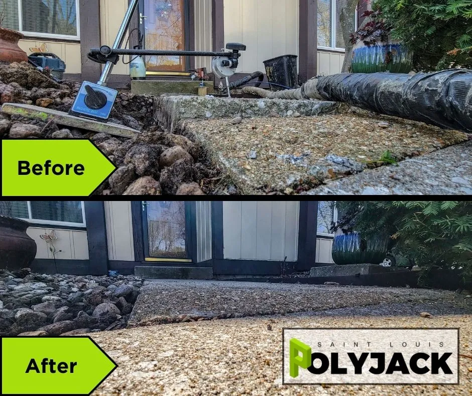 STL Polyjack provides porch leveling in St. Louis, MO using advanced polyurethane foam injection. Our process lifts and stabilizes sinking concrete from underneath—no demolition or replacement—often saving customers up to 50%